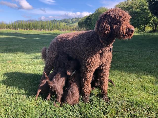 She is the daughter of Jolene, Jolene ( Labradoodle and Mr Peabody , Goldendoodle)