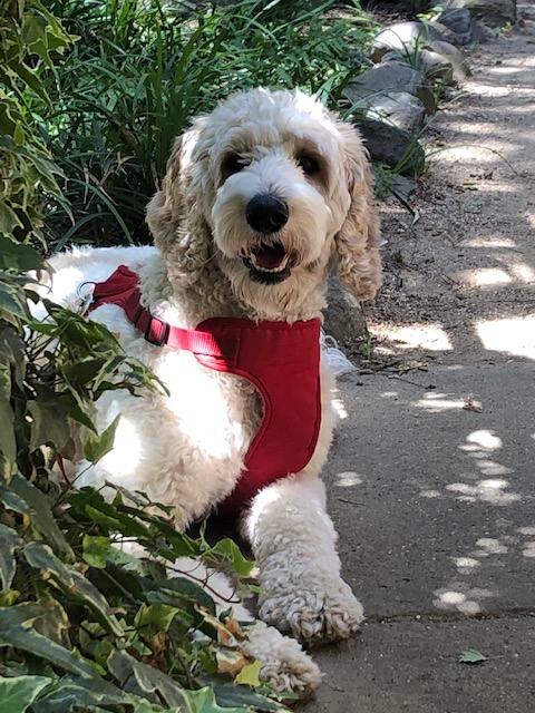 June lives in Vacaville with the Brooks family. She is very sweet and a very good mama. (She has had 1 lovely litter.)She loves her guardian family and labradoodle sister Rooney.