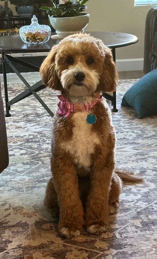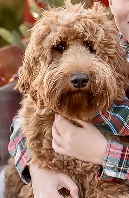 Norah’s guardian in Dylan They live nearby with his family and their canine sibling, another red goldendoodle!