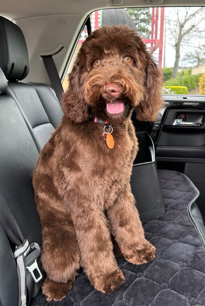 Tula’s mom is our retired BB, a Goldendoodle. Her dad is Paxton from Sacto Labradoodles- she looks just like him, and has her mom’s friendly playful personality. Tula is fully tested ( DNA, hips, elbows, heart and patellas)