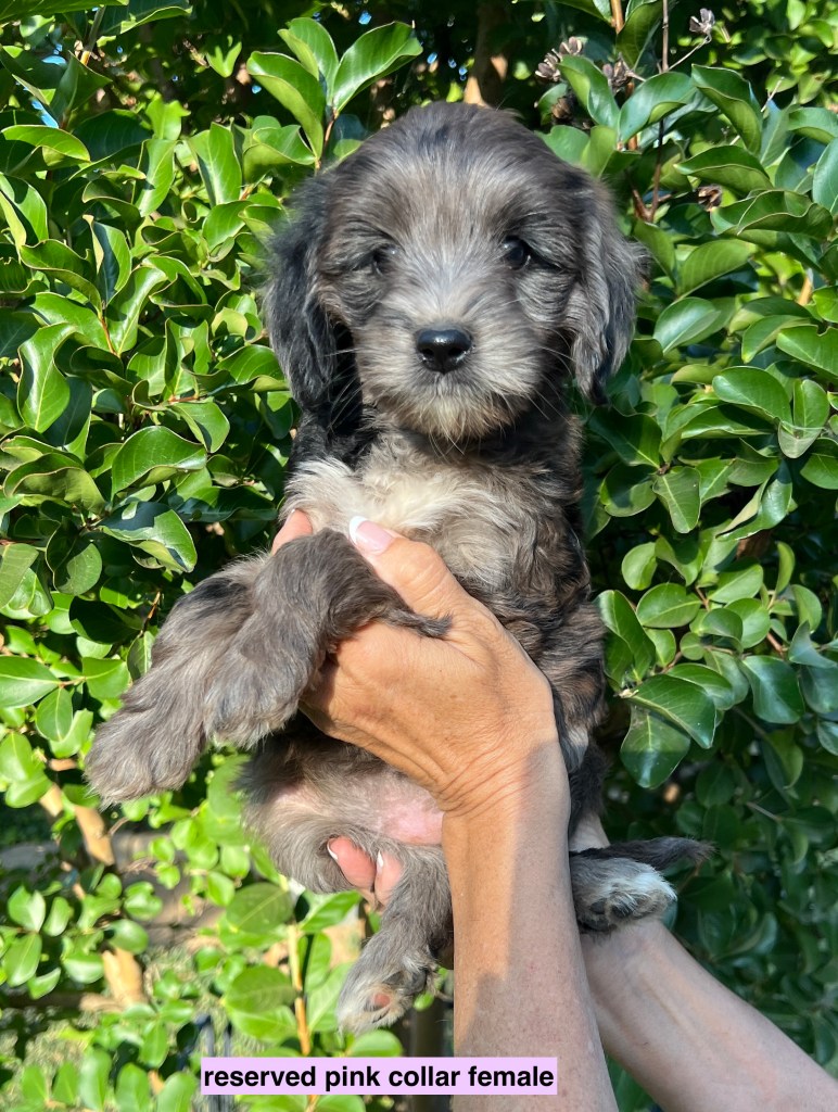 Tula is a happy, playful little girl that gets along terrifically with her dog siblings and humans alike. She lives in Vacaville with Don and Kim. and tw other doodles. she enjoys visits from many family members and daily walks around Vacaville. She is a very good mom and has had one very handsome litter in 2025. We are hoping for the same in 2026.